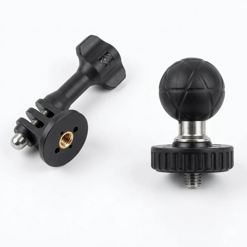 С негова помощ можеш лесно да преобразуваш всяка стойка с ball head (25mm топка) в GoPro съвместим монтаж, което ти позволява да използваш GoPro, Insta360 или друга екшън камера върху мотор, велосипед или друга платформа.