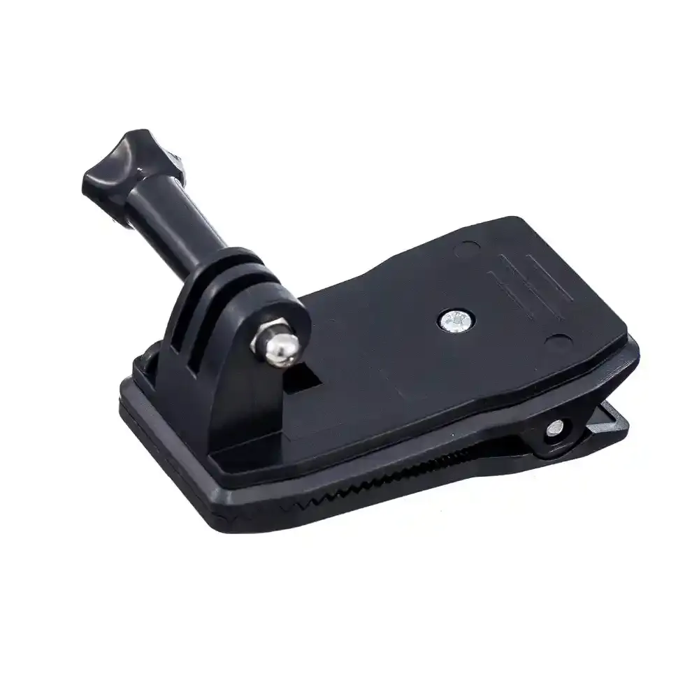 Практична и здрава щипка за раница, колан или презрамка, предназначена за монтаж на екшън камера като GoPro, DJI Osmo Action, Insta360 и други съвместими модели.