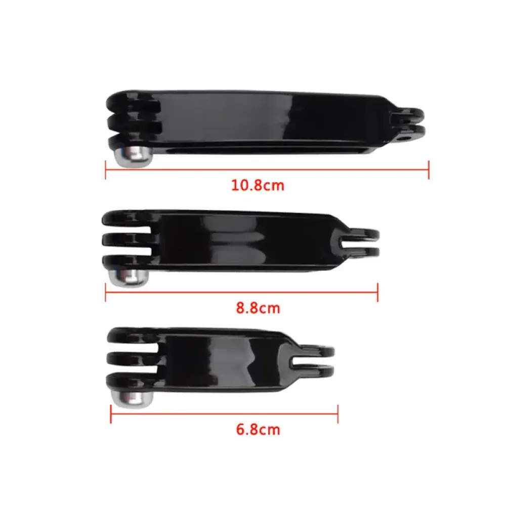 Комплектът включва три различни дължини – 6.8 см, 8.8 см и 10.8 см, които могат да се използват самостоятелно или в комбинация с други адаптери, J-hook щипки, гъвкави рамена и стойки. Това ти дава пълен контрол върху разстоянието между камерата и точката на монтаж.